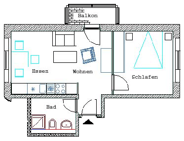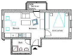 besteht aus einem Wohnzimmer, einem Schlafzimmer,